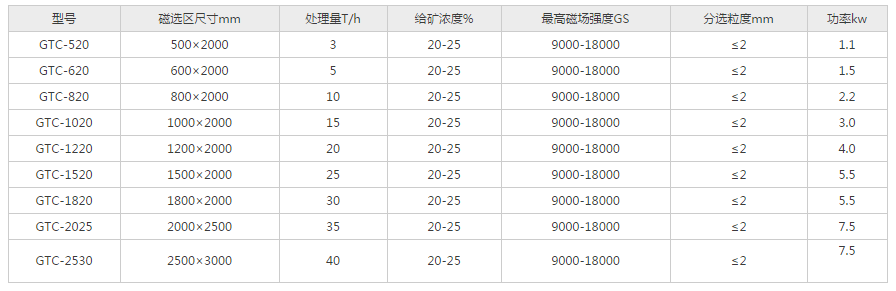 工作时,物料流向和卸铁系统成反向逆流式,非磁性物质利用物理学结构原理自流至出料口,经卸矿冲洗达到完全卸干净的目的。磁性物质经长距离、长区域、多次数被强磁场吸附,经卸铁系统逆向运转至出铁口,经卸矿冲洗达到完全卸干净的目的。