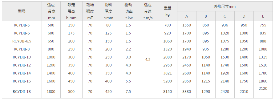 皮带具有自动纠偏功能,低噪声、运行可靠、维护简单。可实现连续不断的吸弃铁。 其内部磁路采用计算机模拟设计、完善的双磁结构,保障整机在恶劣环境中无故障长期运行。拥有防爆型和铠装型。