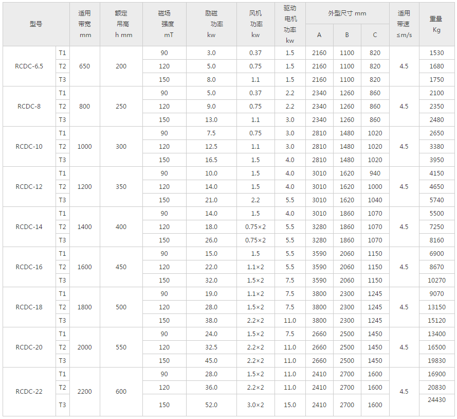 RCDC型风冷电磁榴莲视频APP污下载,是在RCDA系列除铁器的基础上增加了驱动电机、滚筒、带刮板的卸铁胶带等组成的卸铁机构。在工作过程中卸铁机构自动将卸铁皮带吸附的铁磁性物质卸到集铁箱内,无需停电人工清理,实现了除铁自动化。