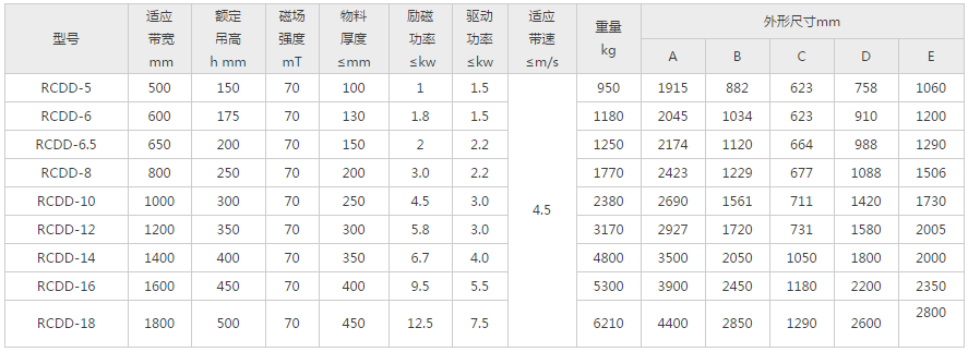 RCDD型电磁自卸式榴莲视频APP污下载是一种用于自动粉状或块状非磁性物料中杂铁的除铁装置。其内部采用电工专用树脂浇注,自冷式全密封结构。具有透磁大、吸力强、防尘、防雨、耐腐蚀、皮带可自动纠偏等优点,在恶劣的环境中仍能可靠运行。